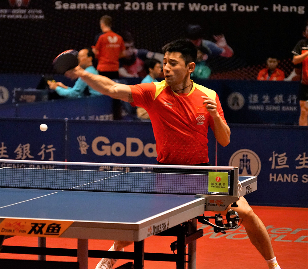 2018国际乒联世界巡迴赛香港公开赛昨天在湾仔伊馆进行第二天赛事,绰号“藏獒”的奥运男单金牌得主中国名将张继科经过半年养伤后华丽回归赛场。他昨早在男单外围赛次圈以4:2险胜意大利球手史杜扬诺夫,随后在晚上的外围赛第三圈同样以4:2击败同胞马特,成功晋级男单正赛的32强赛。而中国香港队男单球手江天一则成为港队唯一一名从外围赛晋级正赛的单打“遗珠”。/大公报记者 张锐