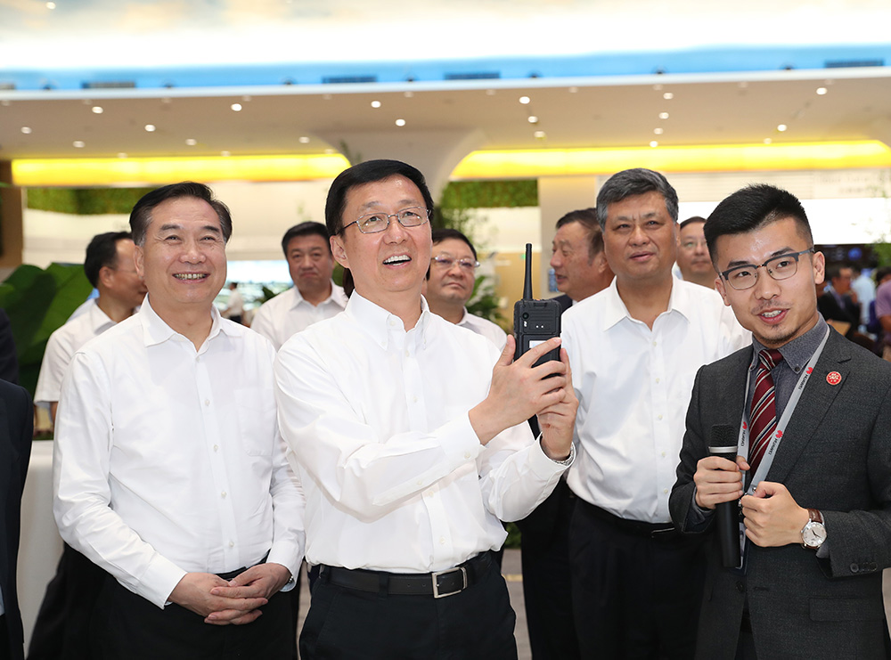 图:22日,韩正在深圳华为技术有限公司了解企业推动核心技术研发和数字化转型情况 新华社