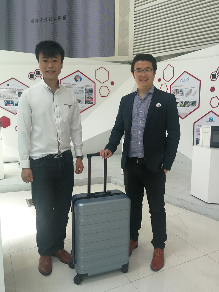 图:香港创业团队随身宝科技展示的智能化行李箱大公报记者黄仰鹏摄