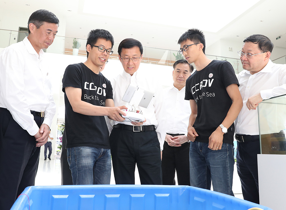 在前海深港青年梦工场,韩正与深港青年创业创新团队互动交流,仔细询问项目研发、市场前景、政策支持等情况,鼓励他们抓住重大机遇,为促进两地共同发展作出贡献。