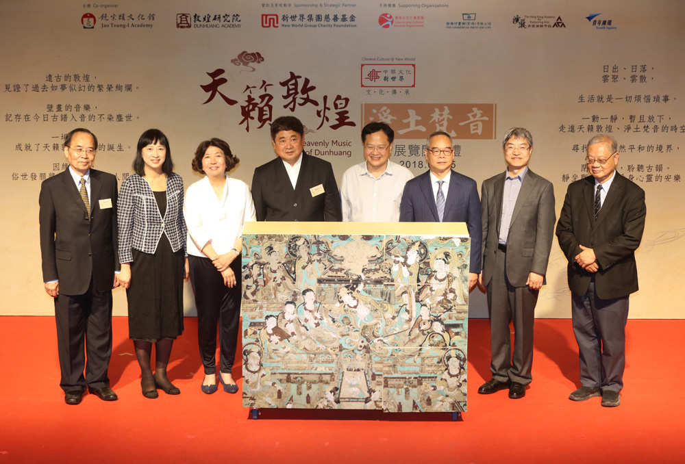 【大公报讯】记者刘毅报道:敦煌石窟是佛教艺术的宝库,石窟中绘有音乐场景的壁画,诠释千年前的音乐场景。饶宗颐文化馆联合敦煌研究院现正举办“天籁敦煌.净土梵音”展览,于饶宗颐文化馆展至八月五日。故宫博物院院长单霁翔昨日出席开幕礼时表示,展览用新方式展现敦煌文化,令观众边听着敦煌音乐边欣赏,是一种很好的传承方式。他亦透露,即将出席下周一西九文化区香港故宫文化博物馆动土仪式。