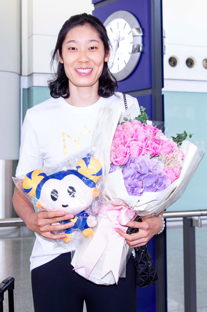 图:朱婷昨天抵达香港国际机场后笑逐颜开 公关提供