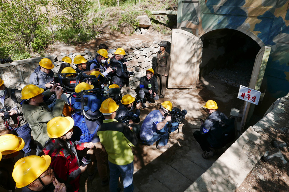 图:记者团24日在丰溪里4号坑道口围观 美联社