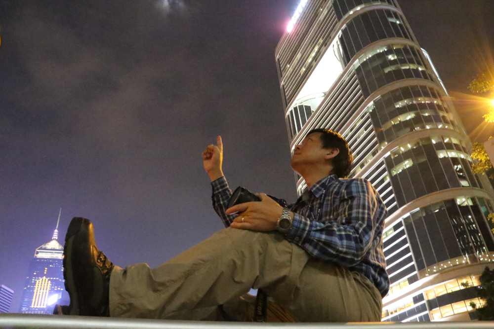 头绑电筒,颈挂双筒望远镜,揹起盛载摄影器材、乾粮和食水的背包,负责调查UFO(不明飞行物体)的香港飞碟学会个案查证组组长司徒华冠,不久前一个晚上,下榻大屿山荒野民宿,他摸黑攀上山坡,忙碌架设脚架、15毫米超广角镜头摄影机和“追星”必备的计时器,调校长时间曝光拍摄,之后悠然躺下,凝视夜空,灵魂彷彿疾驰千万光年,在神秘外星寻幽探秘。