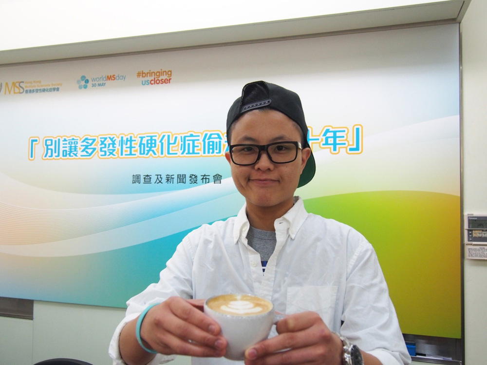 29岁咖啡师Jason于七年前因为视力模糊,等候专科门诊期间视力回復正常,不以为意便没覆诊,两年后復发,右眼近视从300度激增至800度,步履不稳,其后确诊患病。受病情影响,她曾经“拉花”失准,但因及早治疗,现时病情受控,并打算创业开设珍珠奶茶店。