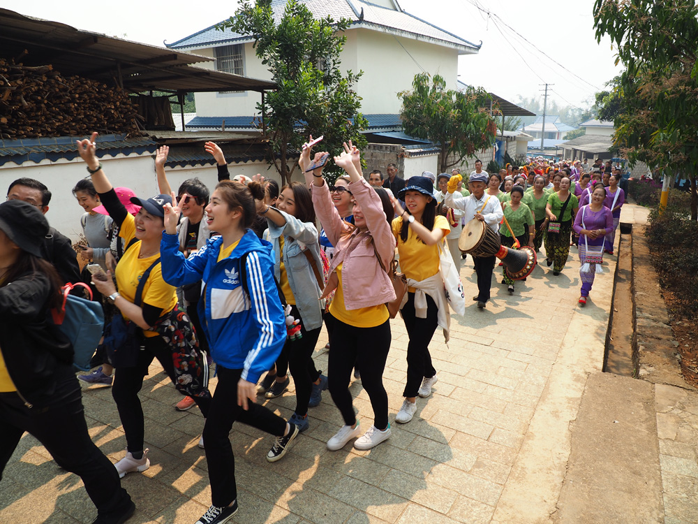 图:云海艺术团一行到访,受到傣族村民欢迎