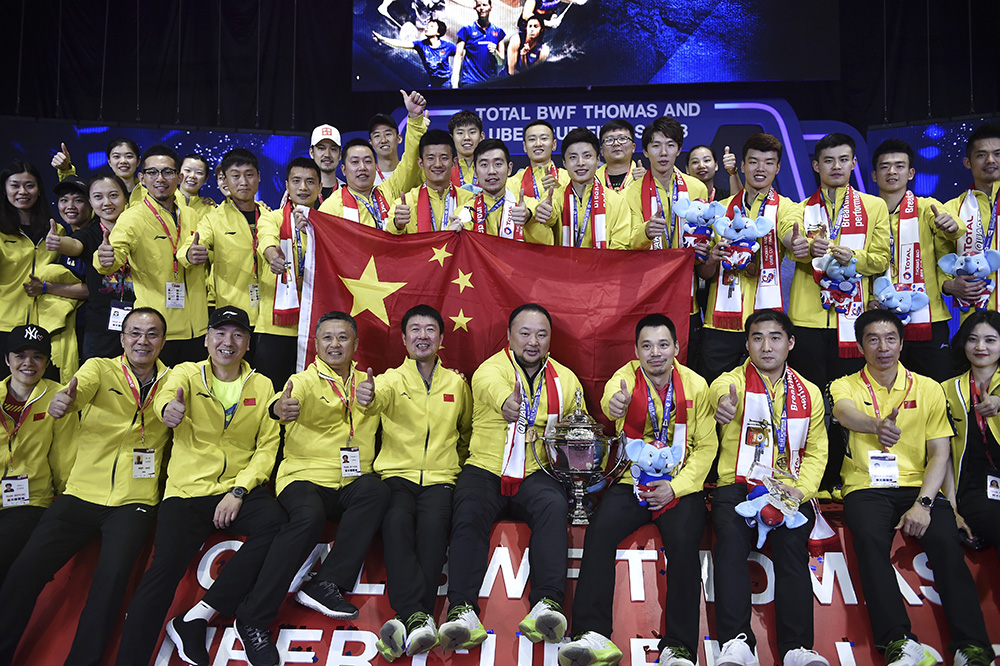 【大公报讯】据中新社报道:昨天结束的2018曼谷汤姆斯杯决赛中,中国队以场数3:1战胜日本,时隔六年再次捧起汤杯。国羽在歷史上九次夺得汤姆斯冠军奖杯,从2004年到2012年更是豪取五连冠,但在过去两届赛事中,国羽先后止步准决赛和八强。