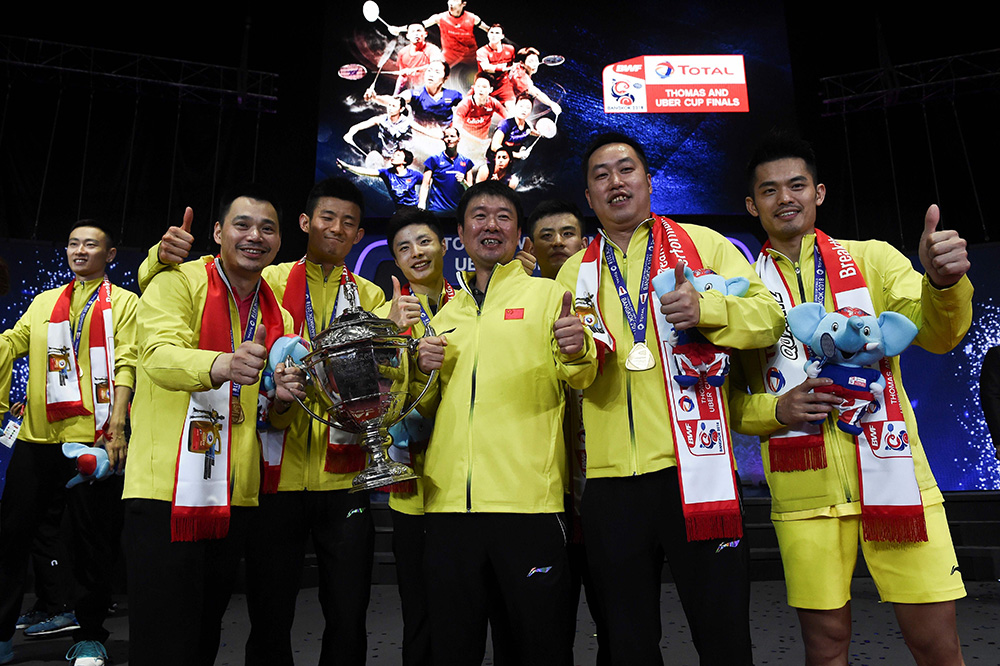 羽毛球男队先输一盘后,以坚毅意志和强大的集体实力3:1逆转胜日本,时隔六年再次捧得汤姆斯杯。这也是中国羽毛球队歷史上第十次夺得汤杯。
