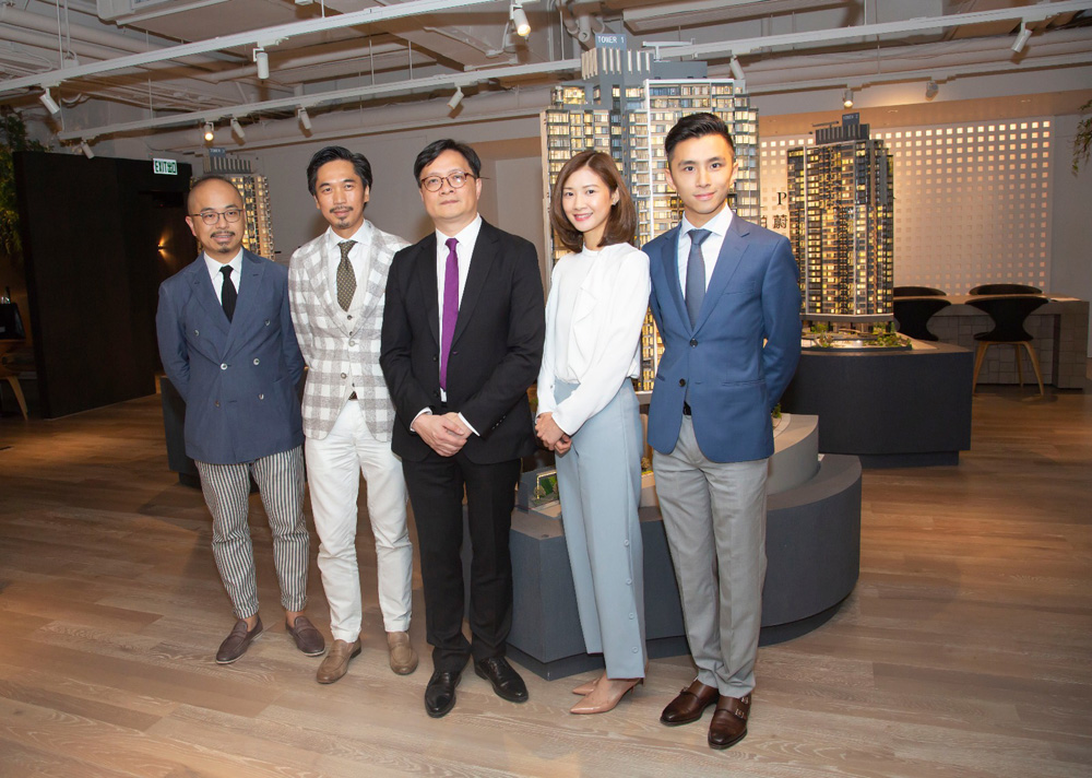 图:黄浩贤(左)称,柏蔚山最快今日开价。旁为新世界发展营业及市务部高级经理刘芷琳(中)及营业及市务部助理经理吴傲楠