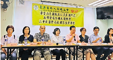 图:麦美娟(左四)指出,现时医管局支援职系存在员工薪酬无法与市场接轨等问题/大公报记者谢莹莹摄