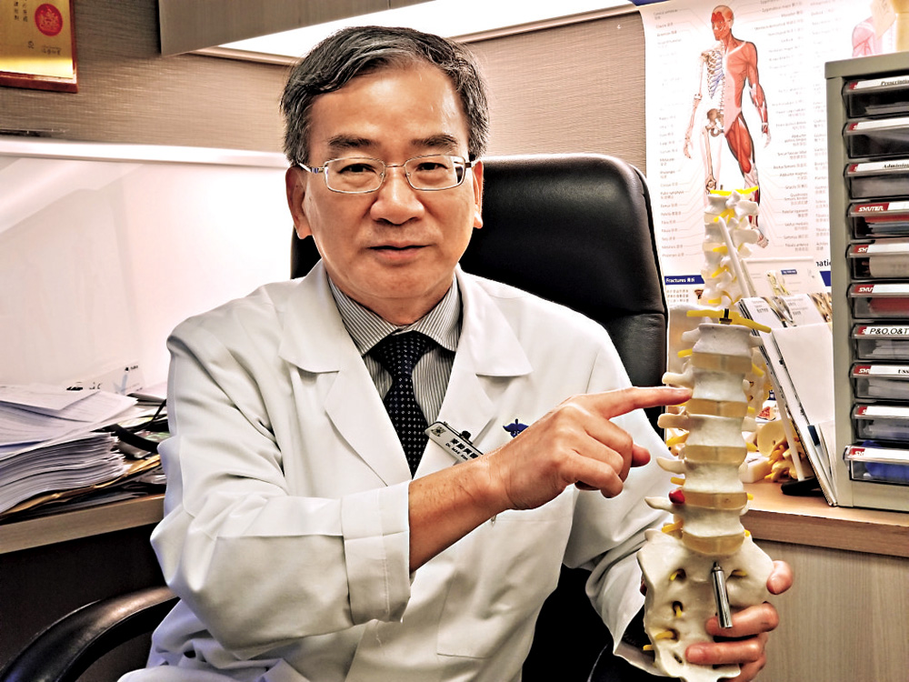 图:麦勤兴表示,骨质疏松引致的脊椎体塌陷性骨折,并无明显病徵,但患者的后背会向前倾,呈现弯曲及驼背,一般会感到腰背痛
