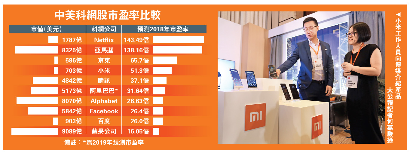 小米上市预料市盈率介乎39.6倍至51.3倍,温杰认为,小米估值甚至高于其他更具品牌认受性的企业,似乎是过于高估其价值。他续说,虽然小米朝向发展资讯生态圈领域,“成功与否没人预测,眼前只见到小米业绩仍然处于亏损”。