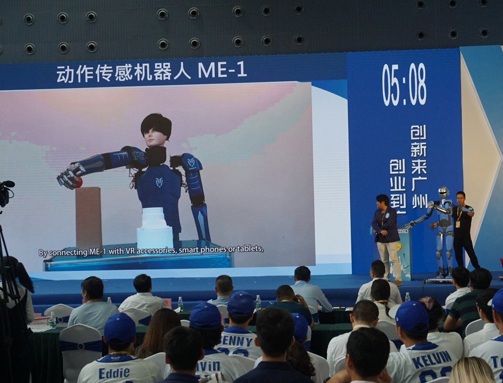 图:在广州青年创新创业大赛现场,香港团队介绍机器人项目/大公报记者敖敏辉摄