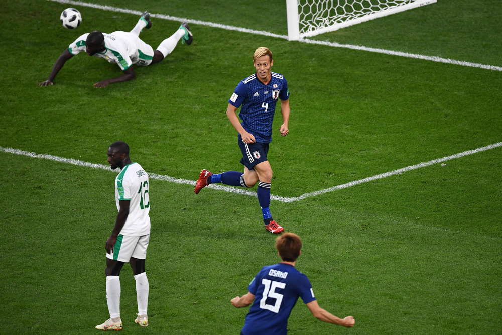 图:本田圭佑(右上)为日本队扳平 法新社社