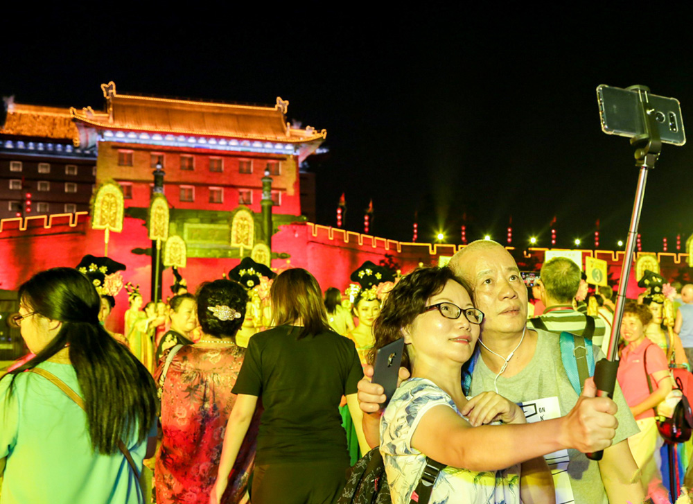 图:香港游客争相在古色古香的西安永宁门合影留念\大公报摄