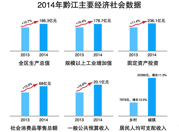 黔江期望力争到2020年,全区GDP达到370亿元以上,二三产业占比提高到92%左右;高新产业产值占工业总产值的比重达到10%以上。