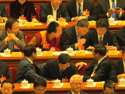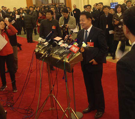 在焦急地等待了20分钟后,部长们逐渐登堂入室。工信部长苗圩、交通部长杨传堂都在3月5日人大会议开始前的20分钟,被陆续拉到“部长通道”接受采访。几人分别就目前的热点事件发表了“权威看法”。国台办主任张志军被拉过来时,杨部长还没讲完话,他就和旁边的记者简单交流,耐心等待。