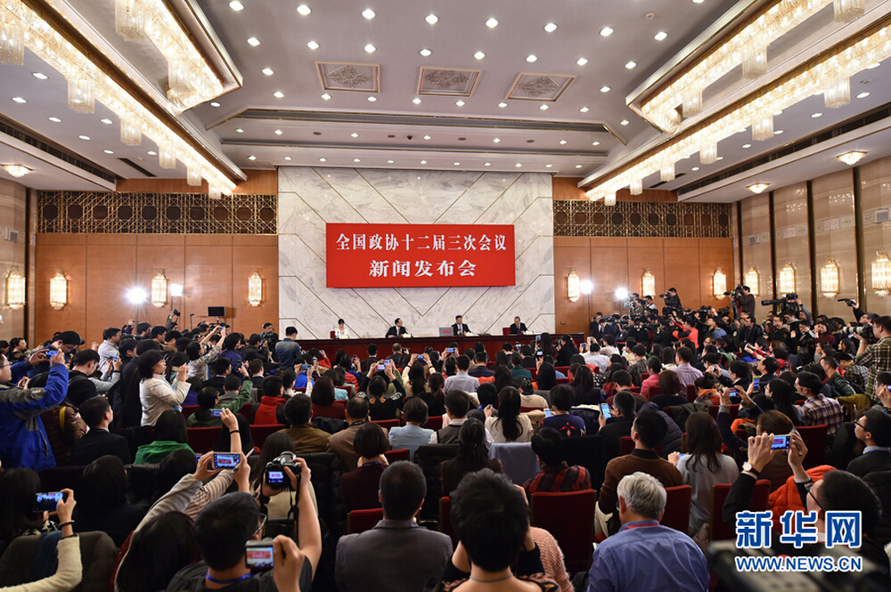 15时在人民大会堂召开全国政协十二届三次会议新闻发布会。