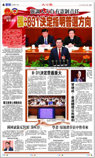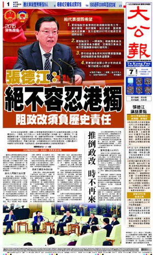 张德江说,常委会依据香港基本法和全国人大常委会有关决定和解释,通过了关于香港特别行政区行政长官普选问题和2016年立法会产生办法的决定,为下一步香港特别行政区提出行政长官普选具体办法确定了原则、指明了方向。张德江:督促有关方面加强顶层设计