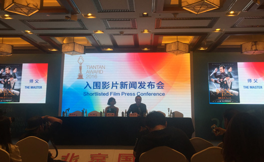 本屆北京國際電影節「天壇獎」共有2部中國影片入圍,分別為《滾蛋吧!腫瘤君》以及《師父》,其中電影《師父》於22日下午在北京國際飯店舉行媒體見面會,影片製作人李霞、胡曉峰出席此次見面會。
