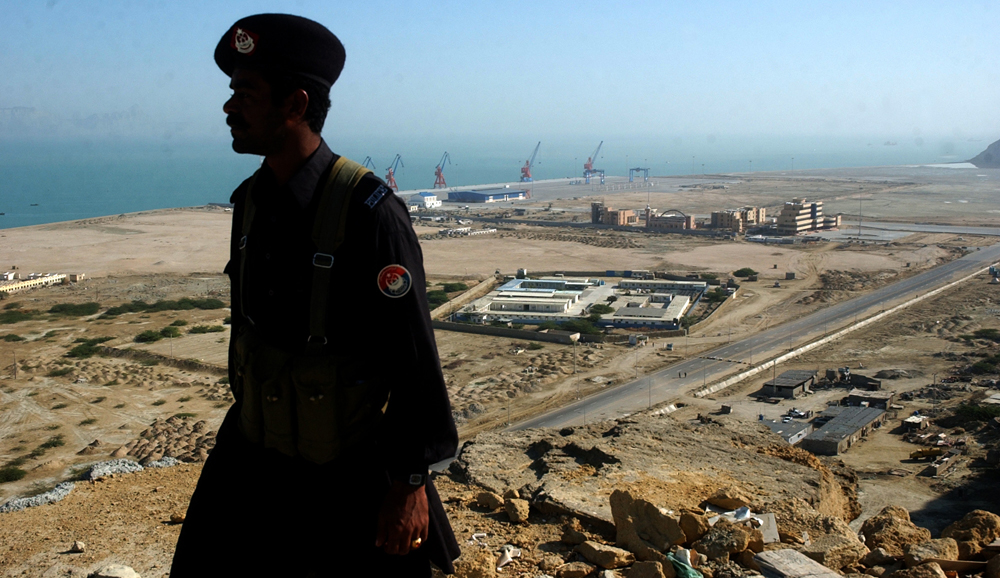 在巴基斯坦安保人员护卫下的瓜达尔港