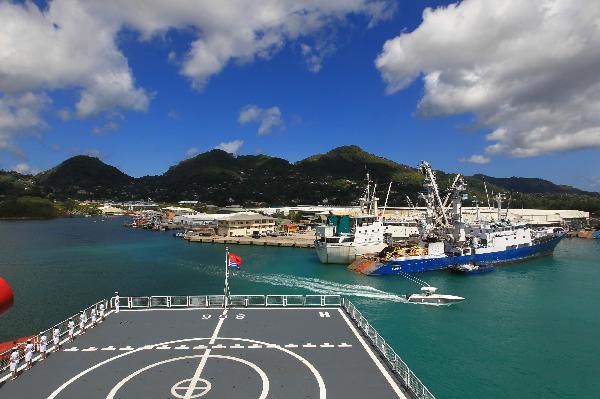 中国海军“和平方舟”号医院船驶离塞舌尔首都维多利亚。