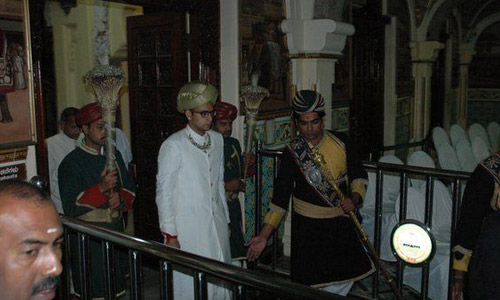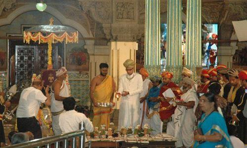 新国王Yaduveer Krishnadatta Chamaraja Wadiyar(印度人的名字稍微有点长)被引导走过了迈索尔宫殿的40个祭司台和15座寺庙。