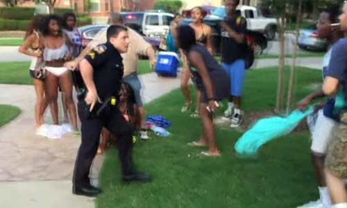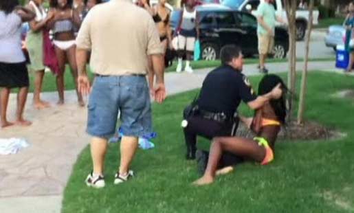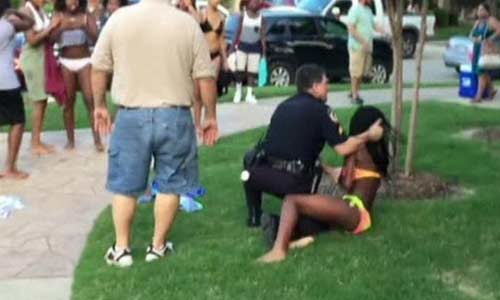 据美国警方称,这名警察是接到街道社区的投诉,这些年轻人的游泳派对严重扰民,并且一些没有收到邀请的年轻人拒绝离开游泳派对,由此产生的冲突。