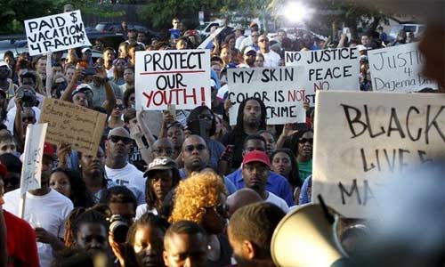 事件发生后,近800多个黑人举行示威游行,强烈要求解雇这名警察。游行的标语是:“我的肤色不是罪”“不要践踏我们的孩子”。