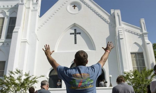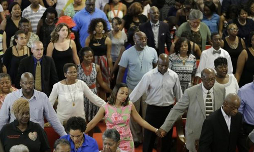 发生白人枪杀9名黑人事件后的第四天,数百人回到教堂,为这些死难者祈祷。