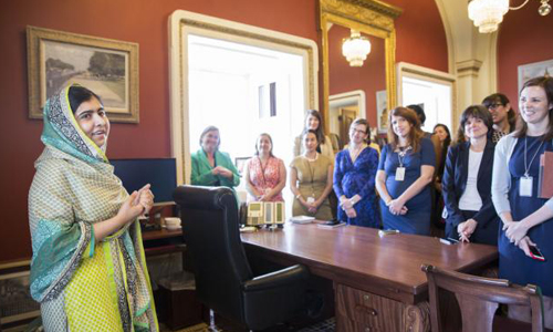 - 玛拉拉•尤萨法扎伊,一个17岁女孩,因倡导女子教育获得世界诺贝尔和平奖。她认为,是时候让美国政府作出一份承诺,资助和支持全球各地能在2030年实现免费提供12年制中小学教育。