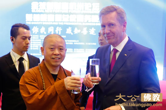 纯一大和尚与德国总统武尔夫亲切交谈