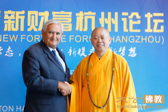 夏日的杭州,炎热是一种常态;就在这炎热的季节,2015全球新财富杭州论坛(总统峰会)7月4日如约而至,论坛在杭州西溪喜来登宾馆隆重举行。德国前总统武尔夫、法国前总理拉法兰、韩国前总理李寿成、秘鲁前第一副总统特里四位前外国领导人和联合国工发组织前总干事、全球中小企业联盟主席、阿根廷前总理、总统热门候选人卡洛斯,中国前外交部长李肇星等与会嘉宾围绕“新常态、新机遇;新模式、新梦想”这一主题展开了演讲和讨论。德国前总统伍尔夫演讲主题为《“一带一路”、工业4.0对中德经济发展的影响》,法国前总理拉法兰演讲主题为《中欧共建丝绸之路经济带的机遇》,韩国前总理李寿成演讲主题为《中韩贸易区对中韩中小企业发展带来的机遇》,秘鲁前第一副总统特里主题演讲了《中国企业美洲投资现状及前景》,中国前外交部长李肇星主题演讲为《世界经济形势分析》,出席嘉宾中,有一位和蔼庄严、身着黄色海清的法师格外引人注目,他就是中国佛教协会副会长、江西省政协常委、江西政协民族和宗教委员会副主任、江西佛教协会会长纯一大和尚。他的主题演讲为《心财富与新财富》。此外,还安排了中小企业家代表滴滴公司总裁柳青、云创控股集团董事长彭嘉明等就中小企业与可持续发展展开了演讲。