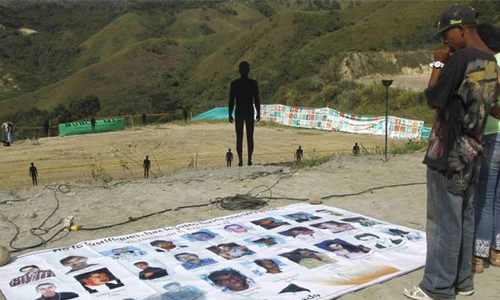 在哥伦比亚麦德林城市,受害者的家属在“垃圾堆”旁举行了哀悼仪式。这一地方,大约有90到300具尸体。