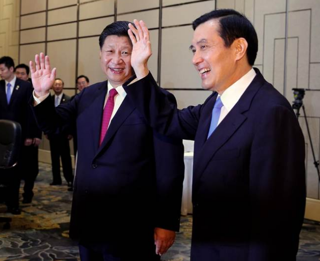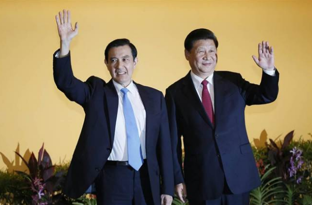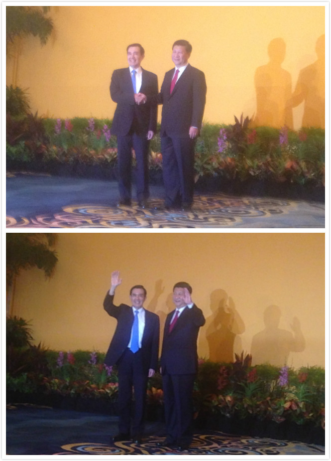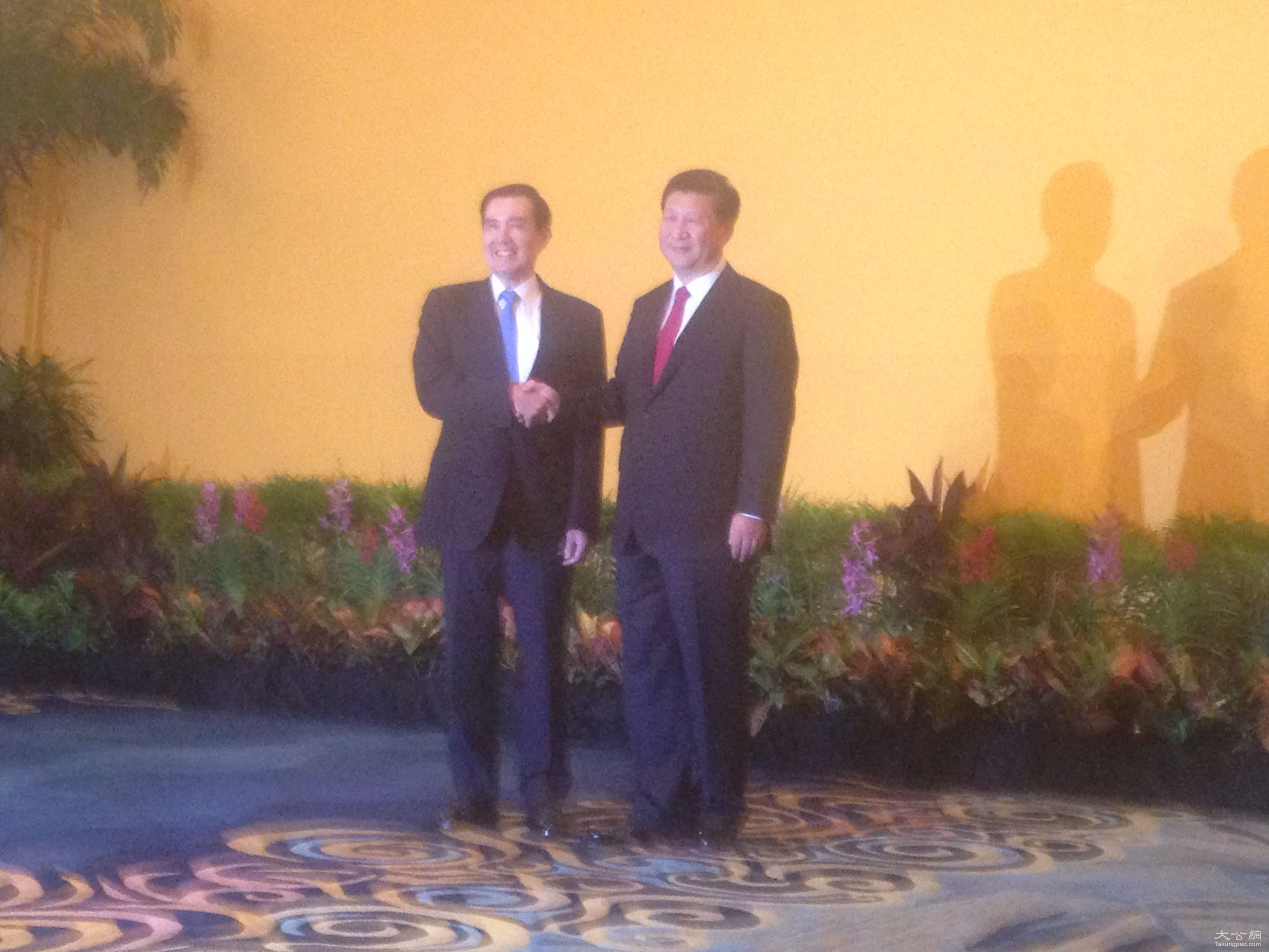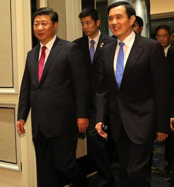 习近平戴了一条红领带,马英九戴了一条蓝领带,这也是极富象征意涵的两种颜色。(大公香港评论员马浩亮)
