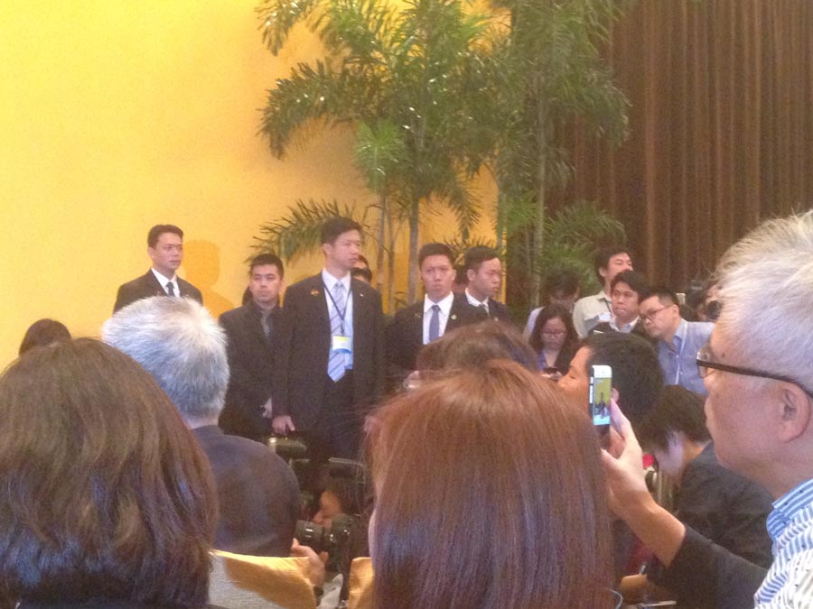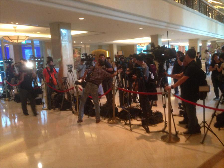 大公特派记者李柏涛七点多抵达新加坡香格里拉大厅,来自两岸四地的主流媒体已经将这里挤得水泄不通。