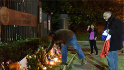 法国驻港总领事馆昨日傍晚于添马公园举行烛光集会,悼念上周五巴黎恐怖袭击的死难者,约500人出席,主要为外籍人士,行政长官梁振英亦有到场献花。