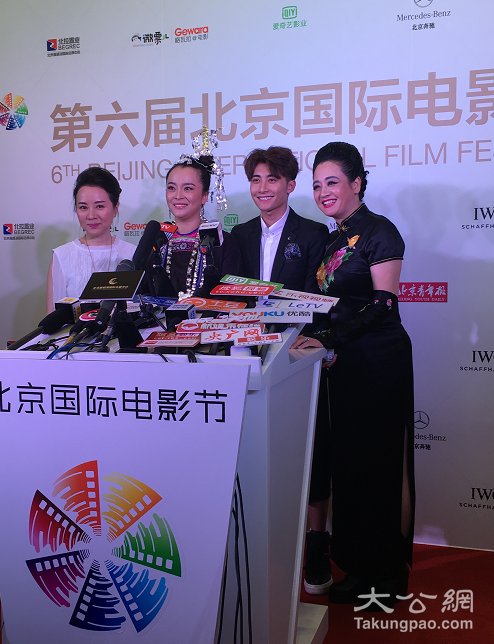 《侗族大歌》劇組主創集體亮相,接受媒體採訪。資深老牌女星伍宇娟在片中飾演母親一角。