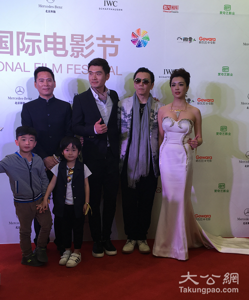 香港影星溫兆倫隨《白云橋》劇組亮相,和他一起出現的還有香港小童星李卓霖。