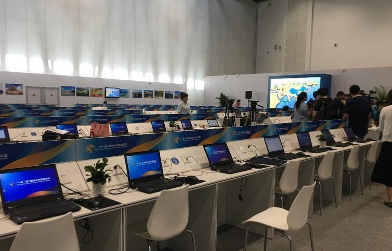 “一带一路”国际合作高峰论坛新闻中心12日在国家会议中心正式运行。为方便中外媒体记者采访报道,新闻中心提供了500多个媒体工位、免费的无线网络和“一带一路”相关书籍。多家媒体在新闻中心内搭建了采访专区。记者江鑫娴 摄