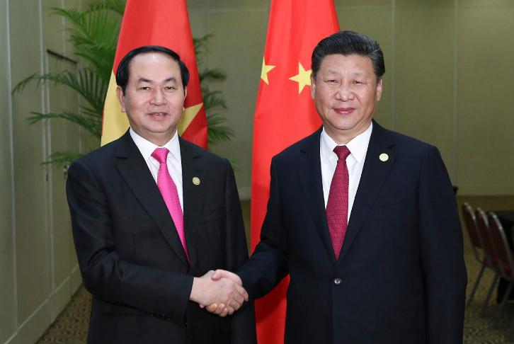 “一带一路”国际合作高峰论坛与会首位外方领导人抵达北京,越南国家主席陈大光将对华展开国事访问并出席论坛。11日,国家主席习近平在人民大会堂同陈大光举行会谈。