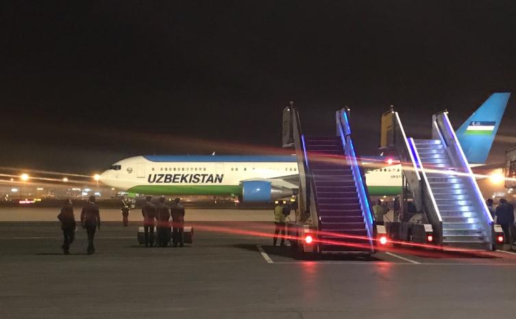11日晚,乌兹别克斯坦共和国总统沙夫卡特·米尔济约耶夫乘坐的专机抵达首都国际机场。应国家主席习近平邀请,沙夫卡特·米尔济约耶夫总统将于5月11日至15日对中国进行国事访问并出席“一带一路”国际合作高峰论坛。