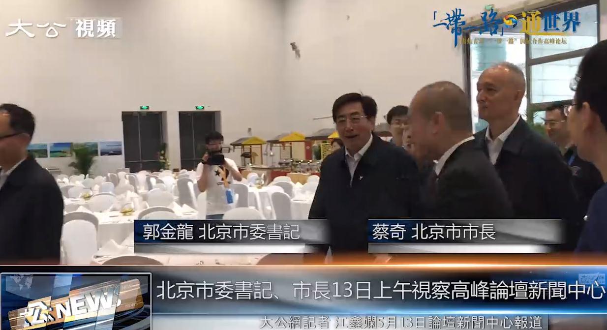北京市委书记郭金龙、市长蔡奇13日上午视察“一带一路”国际合作高峰论坛新闻中心,了解相关准备工作和保障服务情况,并与参会记者、志愿者及工作人员亲切交谈。