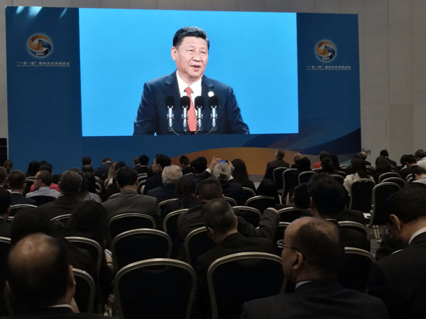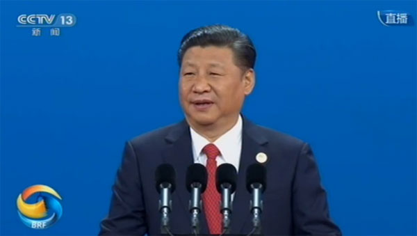 习近平主持“一带一路”高峰论坛圆桌峰会并致辞。