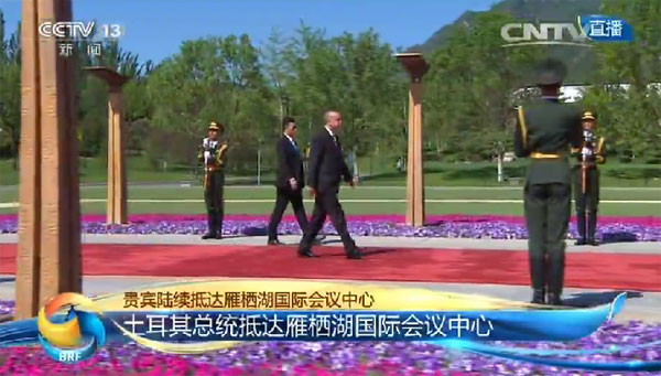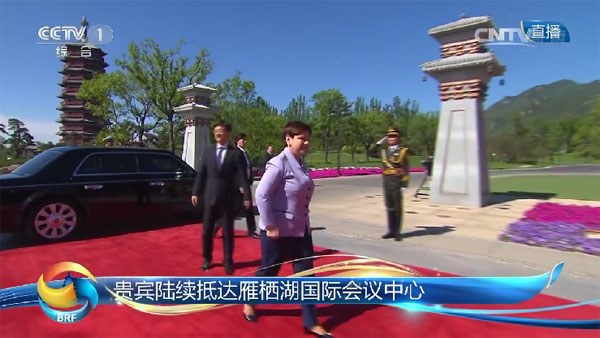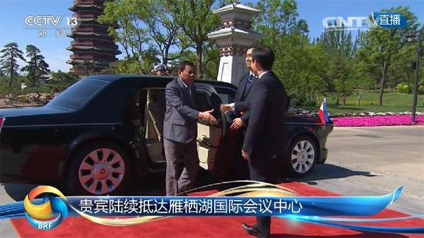 5月15日在雁栖湖畔举行圆桌峰会,共同规划“一带一路”建设合作大计。图为世界银行行长金墉抵达圆桌峰会现场。