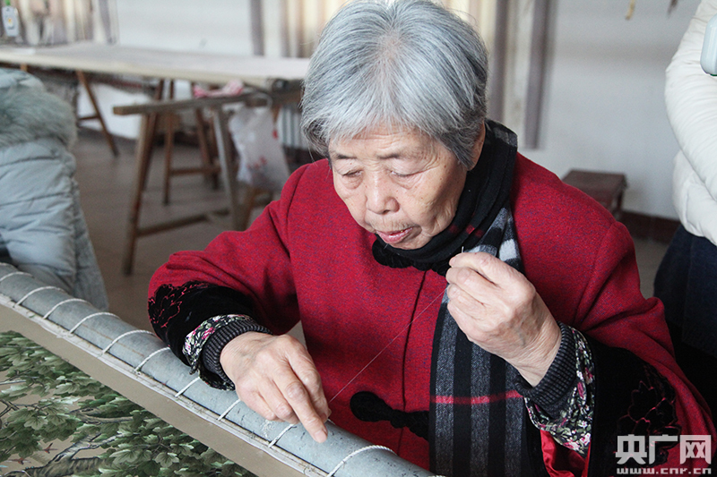 年过八旬的“汴绣皇后”王素花 (央广网记者 高艺宁 摄)