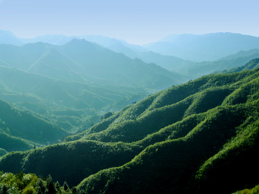 山青水秀,沟谷幽深,溪水长流,大别山腹地,豫、鄂、皖三省交界处,黄柏山国家森林公园在长空云雾中若隐若现。