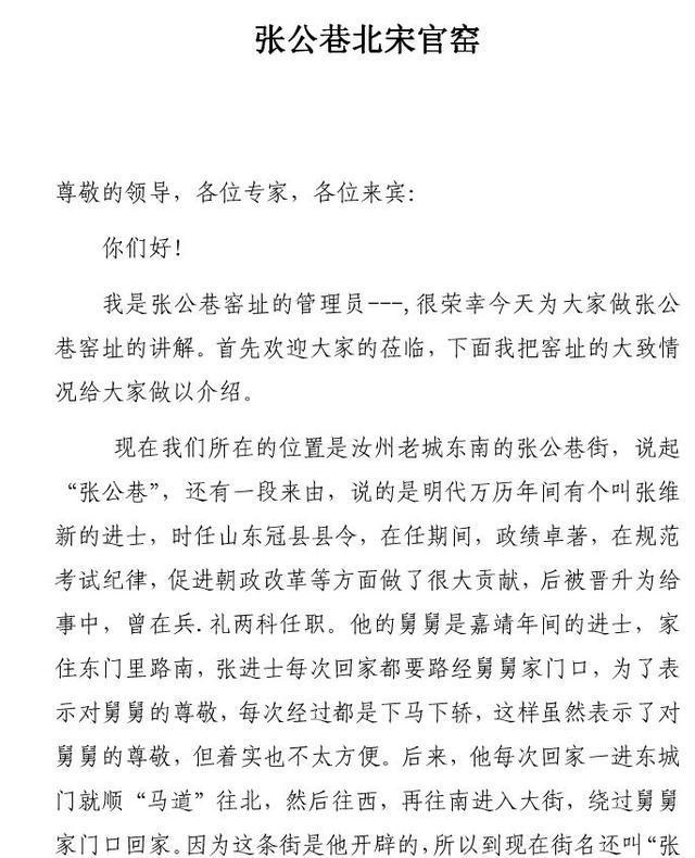 3、网文,汝州市文化局《张公巷北宋官窑窑址讲解词》