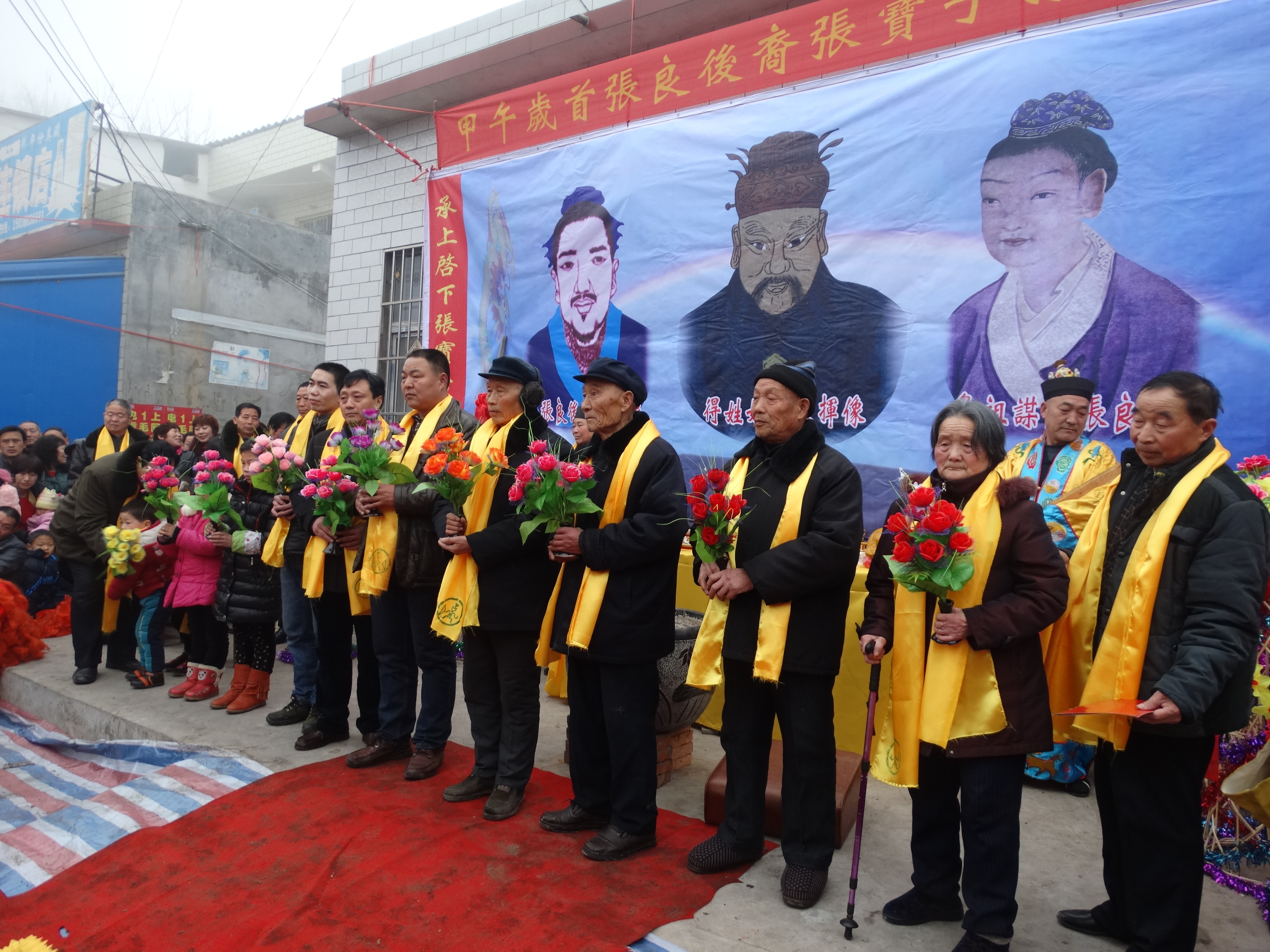 在张良纪念大典上仪式上“九世同堂”共拜先祖