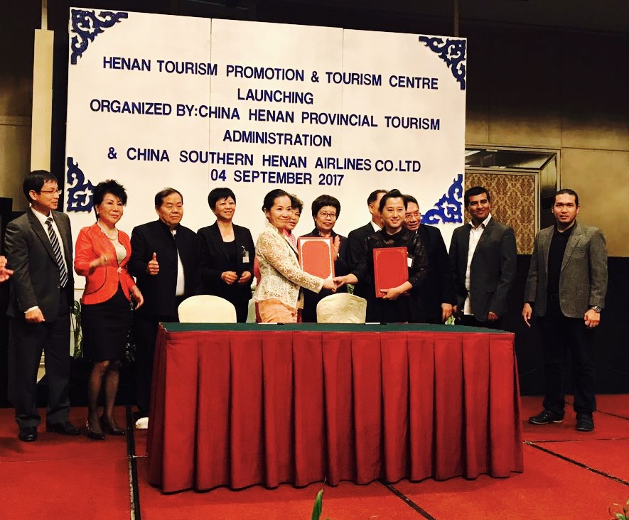 9月4至5日,河南航空旅游推介团分别在马来西吉隆坡、槟城成功进行了河南航空旅游产品推介。期间,河南省旅游局副局长周耀霞邀请到了马来西亚旅游部原部长、拿督斯里黄燕燕博士作为河南旅游推广大使在东盟推介河南,并与槟城旅游发展委员会主席罗兴强洽谈双方深化合作事宜。南方航空河南航空有限公司党委书记王爱荣、马来西亚华人旅游协会会长陈三顺、南方航空驻吉隆坡及槟城办事负责人、河南部分国际旅行社,马来西亚旅游业界,当地主要航空公司和媒体代表等150余人出席本次活动。